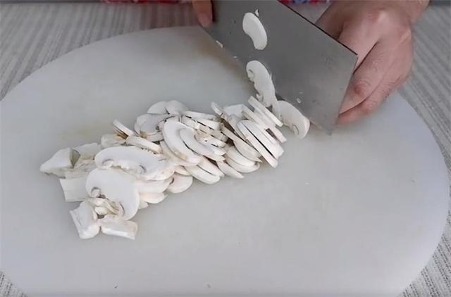 2.新鲜的口菇也洗净,连根一起切成片状。