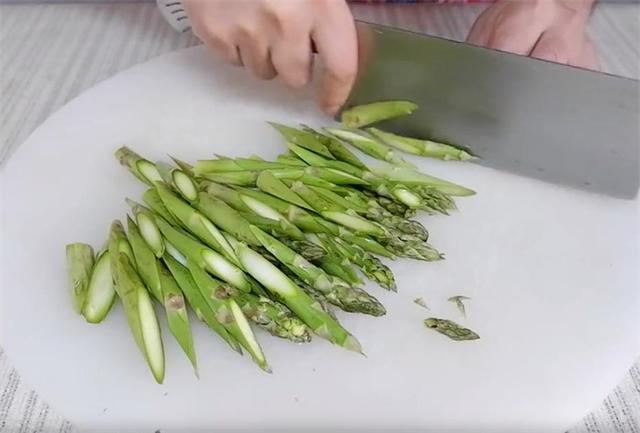 1.芦笋和口菇这样炒,鲜香嫩,素菜也吃得过瘾。先把芦笋洗净,斜刀切段。