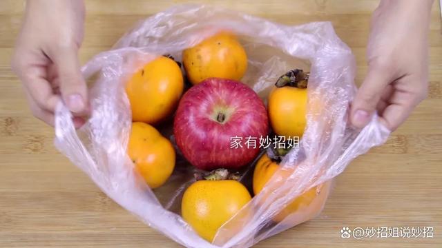 小孔扎好,为了避免外界的灰尘细菌进入小孔,对果肉造成污染,我们可以用保鲜膜将柿子一个个的包裹起来。之后再用个袋子将柿子装好,把它放在家里比较温暖的地方就可以了,大概过上两到三天的样子,柿子就变软,可以吃了。如果今天的文章对您有帮助,那就点一个关注,点一个赞,感谢您的支持。