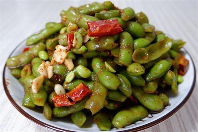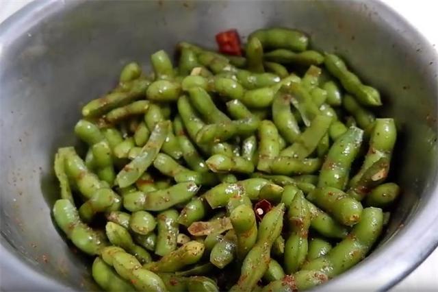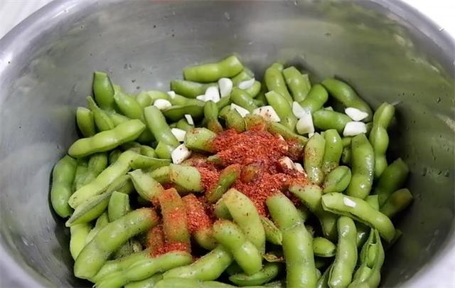 准备食材: 毛豆、盐、蒜末、酱油、辣椒粉、陈醋、麻油、白糖、干辣椒段、食用油 具体做法: