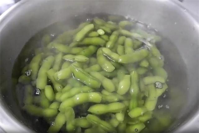 2.在水中加少量的盐,把毛豆煮一下,煮个八分钟就可以了,捞出之后,放入冷水中泡十分钟。