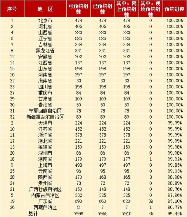 因此,公园币虽然缩量到8000万枚,藏友对它的期待值还是不算特别高。 再加上部分地区在开始预约后,出现10分钟后还剩大量的情况,有不少朋友认为本次预约好像是遇冷了。 没想到首日预约进度就接近百分百。在部分地区的线下额度消化后,第二天的预约进度,又有了明显的提升。具体情况如下表。