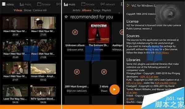 Windows 10 Mobile版VLC视频播放器相比之前WP8.1版本,最大改变就是界面UI全面更新,核心功能升级,包括UPnP和浏览网络共享,支持HTTPS、自适应流媒体传输、更好的硬件解码,并且支持尽可能多的桌面解码。 不过根据外媒消息,目前Win10 Mobile版VLC视频播放器还存在一些Bug,仍在封闭测试中,希望正式版尽快登陆Windows10应用商店。 下面是Win10手机版VLC曝光截图: