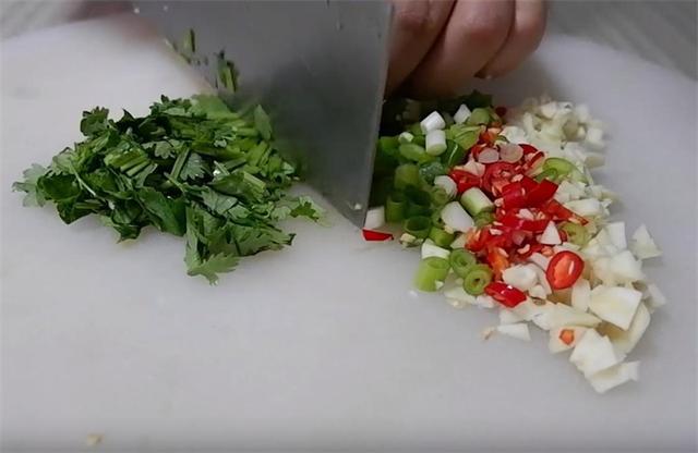 1.又到了吃凉拌面的时候,做凉拌面最重要的就是拌料,今天分享这个酸辣拌料,酸辣爽口,非常的给力。多切几瓣蒜,几个小米辣、香葱和香菜。
