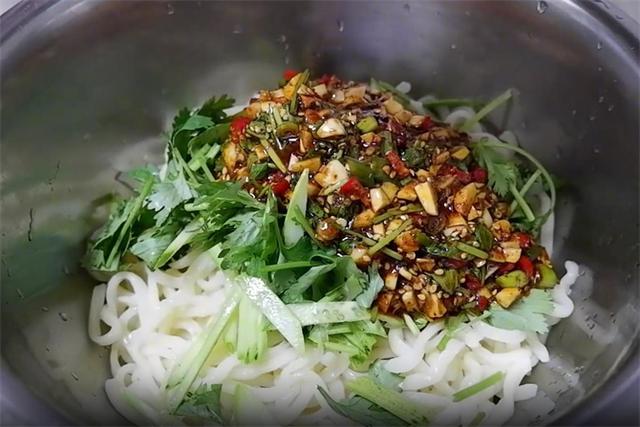 准备食材: 面条、大蒜、小米辣、香葱、香菜、白芝麻、辣椒粉、食用油、白糖、素蚝油、陈醋、海鲜酱油、花生碎、黄瓜 具体做法:
