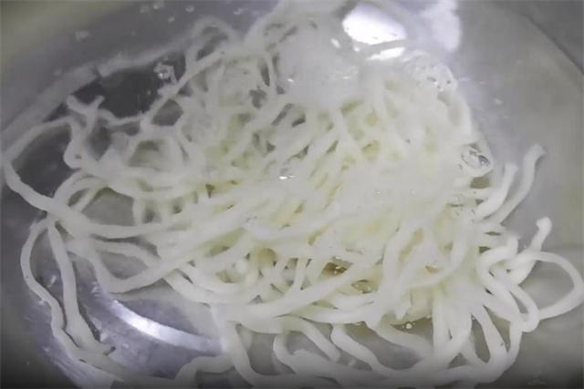 5.接着把面条煮一下,做凉拌面的面条煮个七分熟就可以了,捞出来之后,记得过一下冷水。