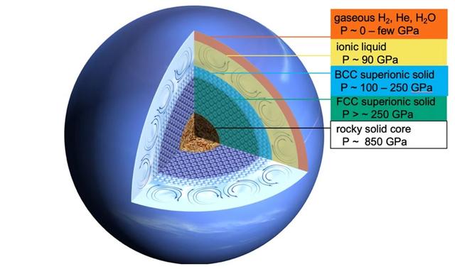驱动激光的波长是800纳米,持续时间是10皮秒。探测激光的波长是1.5埃,持续时间是50飞秒。他们在驱动激光打在水样品后的不同时间点上打探测激光,从而得到水在不同压缩阶段的X射线衍射图像。 通过这种方法,他们发现了一种新的水冰相,命名为冰XIX,其结构为体心立方(BCC)。这种结构与之前理论预测的几种立方或正交结构不同,表明水在高压高温下有着复杂而丰富的相图。冰XIX在200 GPa和约5000 K的条件下稳定存在,并且接近于熔化边界。这意味着,在冰巨行星的深层内部,可能存在着一种具有较高电导率和流动性的BCC水冰层。 这一发现对于理解冰巨行星的磁场和动力学有着重要的意义。冰巨行星的磁场与木星和土星等气态巨行星不同,呈现出非轴对称、非偶极的特征。这可能是由于冰巨行星内部存在着一个由离子化水组成的液态层,其对流运动产生了复杂的电流和磁场。如果水在高压高温下发生了相变和电离,那么它的电导率和流动性就会发生变化,从而影响磁场的形成和演化。因此,揭示水在极端条件下的物理性质,有助于我们更好地认识冰巨行星这一类神秘而迷人的天体。(www.wS46.com)
