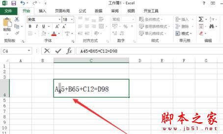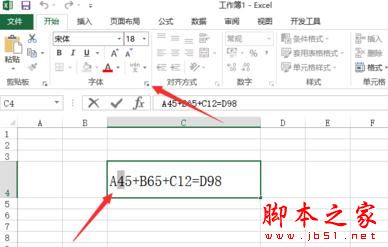 三、在数据单元格中,选中单独某一个数字,如4,再点击字体功能区的功能键按钮。如图所示: