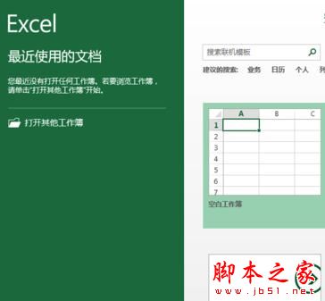 一、在电脑桌面的Excel2013工作簿程序图标上双击鼠标左键,将其打开运行。点击空白工作簿,新建一个空白的Excel文件。如图所示: