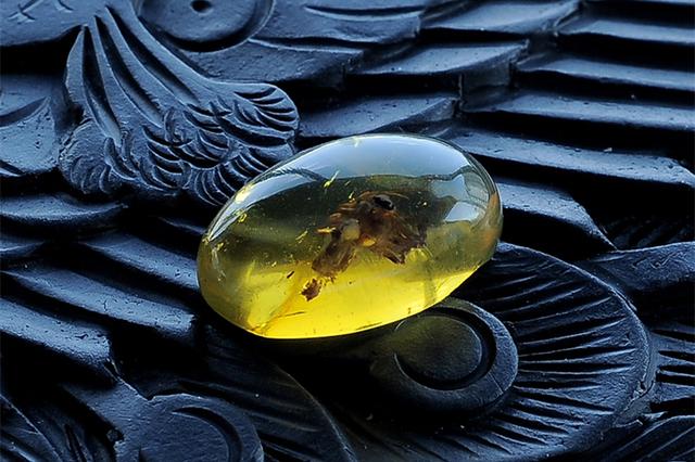 除了这些地方墨西哥也有特别漂亮非常干净的叫金蓝珀,墨西哥的所谓的蓝珀必须是垫在深色的背景下,你看着颜色是发蓝的,如果没有深色的背景它的颜色就是金色的,特别像俄料的金珀,真正的天空蓝的琥珀来自于多米尼加,大家可能没听说过。
