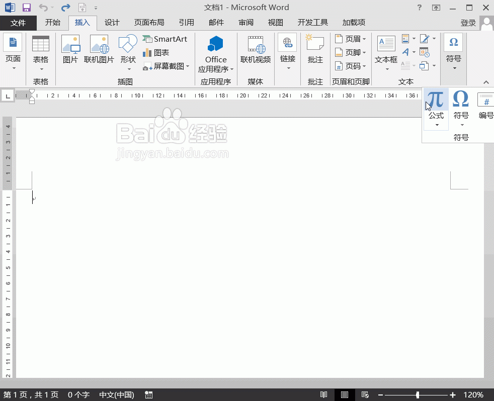 3、我们再在打开的界面内找到插入选项,点击该选项在其编辑区里找到符号选项,如图所示: