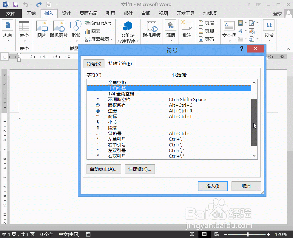 6、在特殊字符内找到零宽度非断开空格选项,点击插入之后我们就设置好了,如图所示: