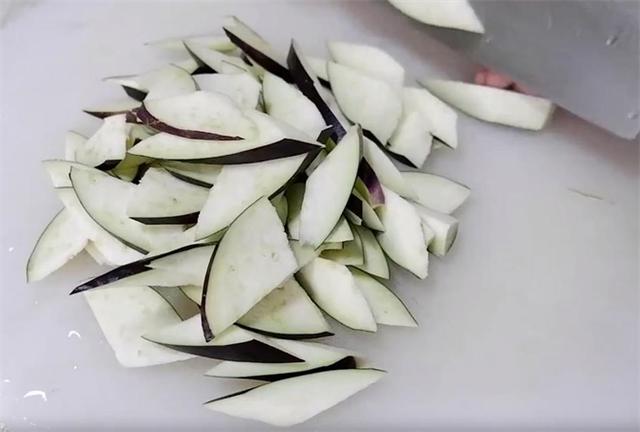 1.今天做怪味茄子,茄子五味混合,真正的茄子做法。这道菜一根茄子就够了,洗净之后切长条,再斜刀切1厘米左右厚的片状。