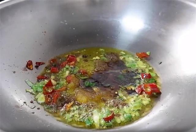 5.接着另起锅,加入少量的油,加入葱蒜、干辣椒炒香,然后关火,加入3勺糖,三勺陈醋。