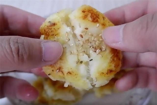 6.翻面之后,放入芝麻,再次翻面,再煎一会儿就可以了。