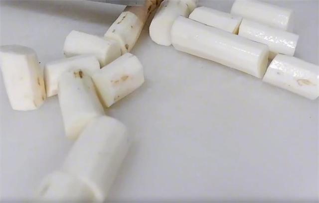 1.山药大家应该都爱吃,并且多数朋友应该都是炒着吃,但今天这个做法,相信很多朋友都不知道。山药买回来之后,先去皮洗净之后再切成段。