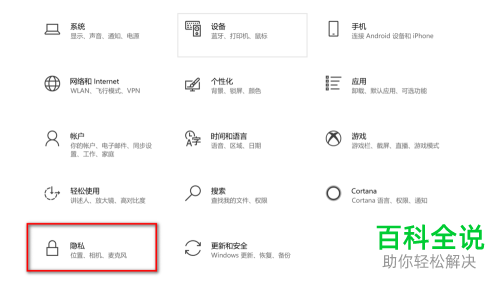 3. 第三步打开【设置】窗口后,根据下图所示,点击【隐私】选项。