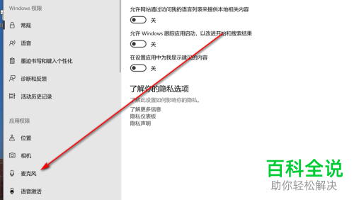 4. 第四步进入【隐私】页面后,根据下图箭头所指,点击左侧【麦克风】选项。