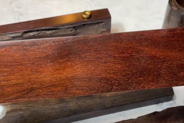 形成表面不平整但是非常厚重的包浆,现在市面上的风化皮沙料,一般就是两种一种是纯原料,一种是拆房老料,我们经常说的印度那边的庙宇,或者贵族居住场所的房梁料,这类原料的优势其实并不是料子的品质,是经过了这么久的自然放性,它木性稳定了,但是这个木性稳定也不代表它的油性和密度好。