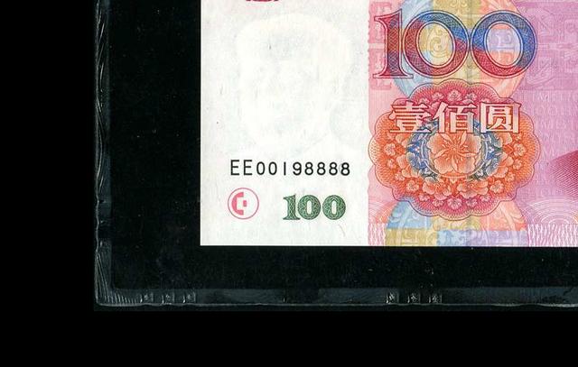 100元首发币的冠字是EE,号段在理论上是从000到004,以及最后一张收尾的EE00500000。 只要是这个区间的1999年100元,都是珍贵的首发币,它们少说也要几千了,号码不错的能达到几万,你也多留意一下吧。 |