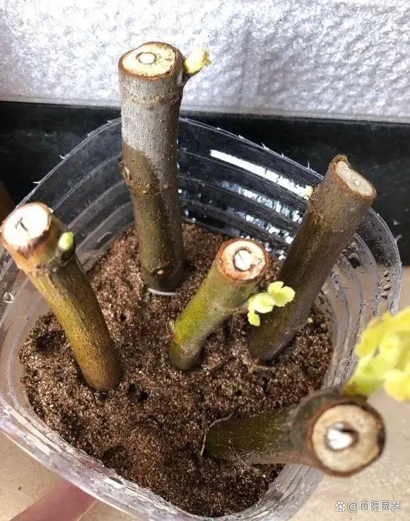 大家在扦插的时候可以多扦插几支,保障最为基础的存活率,扦插的容器可以使用矿泉水瓶,从中间一截两段,底部打上两个排水孔,当上河沙就可以用作为扦插繁殖,透明的容器更有利于观察根系的生长状态,一个矿泉水瓶里至少可以扦插3~4个枝条。
