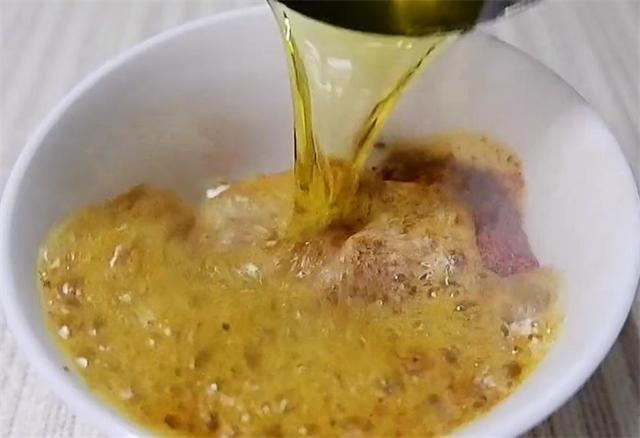 4.再加十三香、盐、素蚝油、陈醋和酱油搅匀。