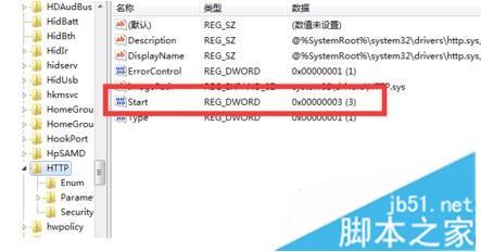2、找到HKEY_LOCAL_MACHINE目录--System--找到CurrentControlSet-Services,再找到http-start;