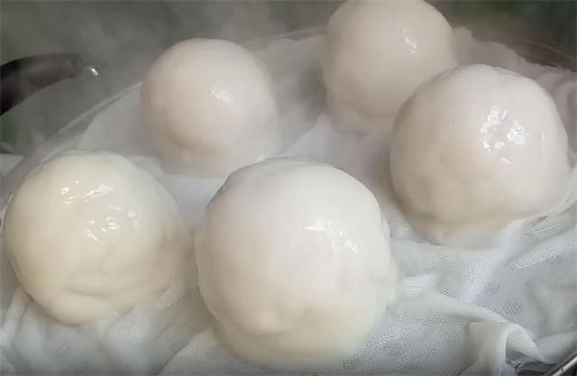 8.我们在包制的过程中可以开火,先把水烧开,水开后,把蒸布放在帘子上,然后把糯米团下入蒸锅,每个糯米团中间要留一定的距离,防止粘连到一起,然后盖锅蒸八分钟,八分钟之后开锅晾一会儿。