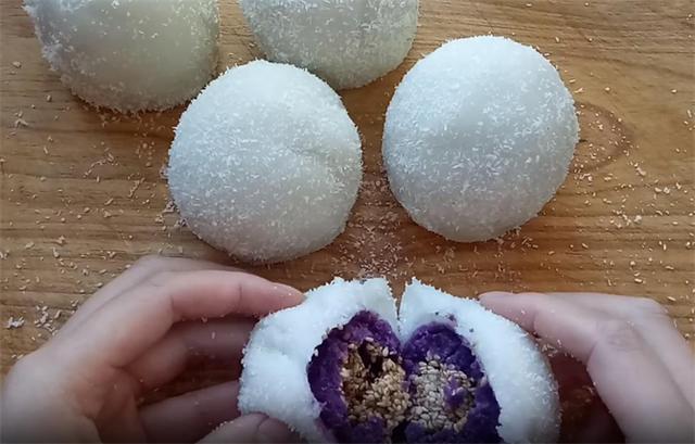 准备食材: 糯米粉、紫薯、熟芝麻、白糖、淀粉、椰蓉、清水 具体做法: