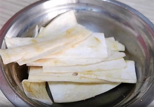 1.说真的,没有人能拒绝这样的杏鲍菇。杏鲍菇洗净去头去尾,再切成厚厚的薄片。