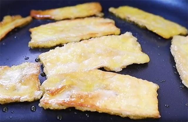 4.平底锅加少量的油,杏鲍菇放入煎,全程小火煎至杏鲍菇酥脆金黄出锅。