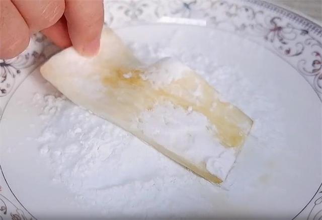 3.腌好后,杏鲍菇两面沾满淀粉。