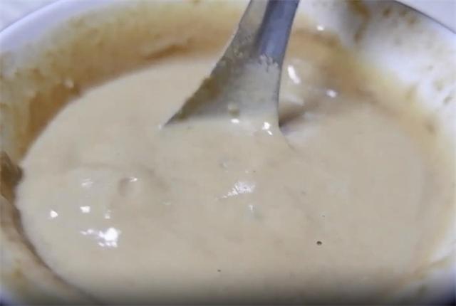 3.半碗热水,加入两勺芝麻酱,把芝麻酱完全调开。