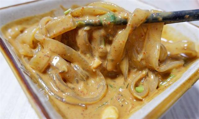 在这个追求味蕾极致享受的时代,每一道美食都承载着对美好生活的无限向往。今天,就让我带你一起探索那令人欲罢不能的宽粉新境界——这才是宽粉最好吃的做法,而它的灵魂,就藏匿于那一碗精心调制的麻酱汁中,热辣浓香,每一口都是对味觉的极致宠溺,太过瘾了! 宽粉,那宽厚而滑嫩的口感,仿佛是秋日里的一抹温柔,却又带着几分不屈的韧性。而这一切的升华,全赖那碗秘制麻酱汁。精选上等芝麻,慢火细磨,融入特制辣椒油,再辅以蒜末、葱花、香醋等提鲜增香的小料,每一滴都蕴含着匠人的心血与对食材的尊重。这麻酱汁,色泽红亮诱人,香气扑鼻,还未入口,已是满口生津。