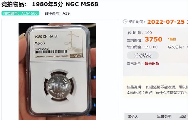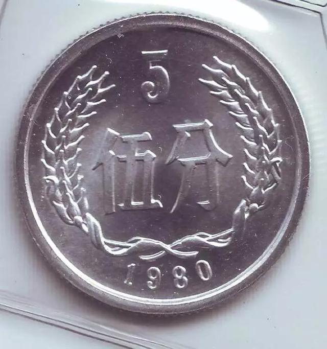第二种年份是1980年的5分,这种年份的5分同样是装在册子里的,只是装的硬币发生了变化,还多了长城币进来它的数量也要多一些,绝品的一般能拍出个好几千。