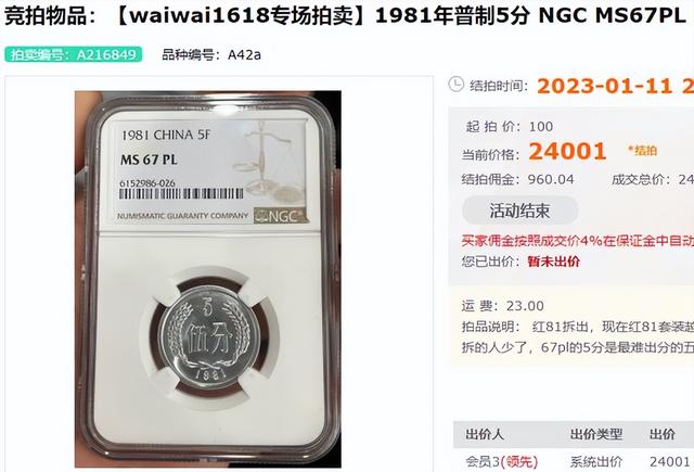 最后一个年份表现也是相当的出色,它就是1981年的5分,它同样是装成在小本本里面的,里面的硬币也还是当年发行的长城币和硬分币,这种绝品的81年的5分硬币,同样是能拍出20000多的非常的珍贵。