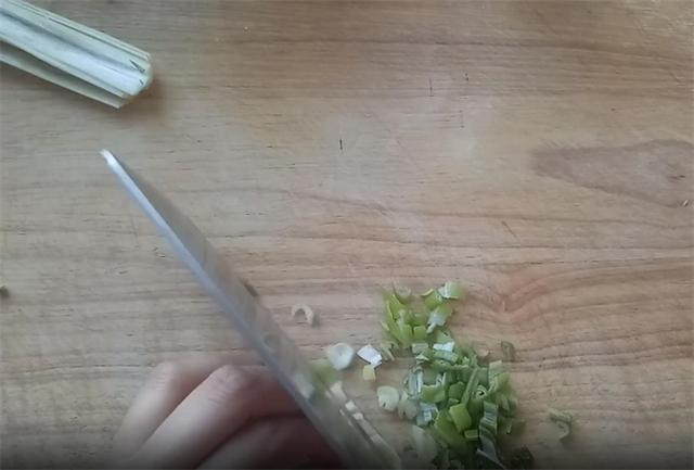3.把大葱切的碎一点,这样在后续擀饼时不易戳破饼皮。