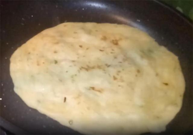 13.当饼底煎至微黄时,再次翻面,直至整个饼体微微鼓起,即可出锅享用。这样制作出的葱油饼,外皮酥脆内里柔软,层次分明,每一口都是满满的幸福感。 |