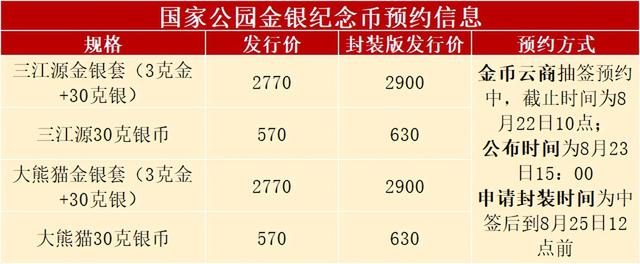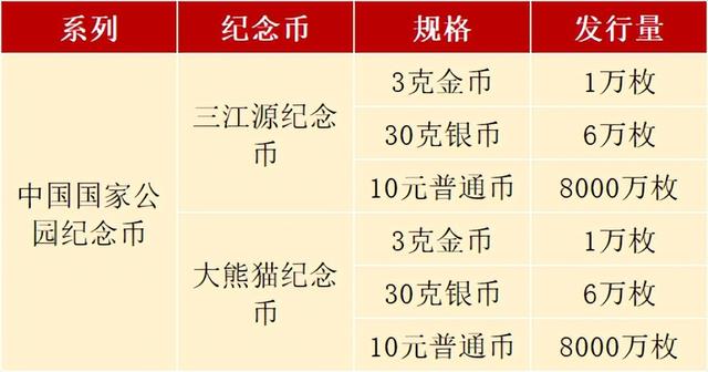 本次将一口气发行三江源和大熊猫2套国家公园纪念币,包括贵金属和普通纪念币。 具体规格如下: