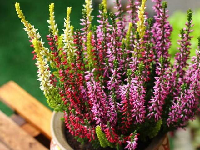 5、帚石楠它和欧石楠很像,是同科不同属的植物,很多花友都会把它们弄错,但错就错养,只要我喜欢就行。它们还是有些差异的,特别是你仔细的观察花瓣就能发现它们的差别了。有兴趣的花友可以关注下。这也算是一个小小的知识点,也可以在花市上买花时,及时的分辨出来。 帚石楠喜欢太阳,家里栽培的话,阳台是最好的环境,充足的光照会让它的叶片和花朵颜色更加的艳丽。它还超级耐寒,冬季基本不用特别的养护,长达6个月的花期让我们有充足的时间来欣赏它的美色。野生的帚石楠只有紫色一个花色,但是园艺品种经过改良,已经有课很多的花色,混种起来栽培,非常的漂亮。