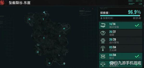 在东崖秘境中总共有14个据点宝箱,27个谜题,29个战地营地,4个方尖碑以及4个据点需要大家进行寻找,只有将它们全部找到,才能将该地图的探索度达到100%状态,其中宝箱里面有各种各样的物资,能大大提升玩家的强度,提升秘境探索度。