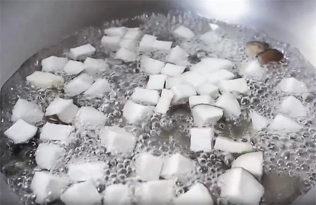 3.切好后把杏鲍菇焯水,煮两分钟捞出。