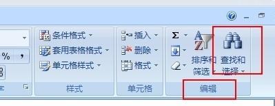 5、在该选项下找到编辑选项,然后点击查找和选择