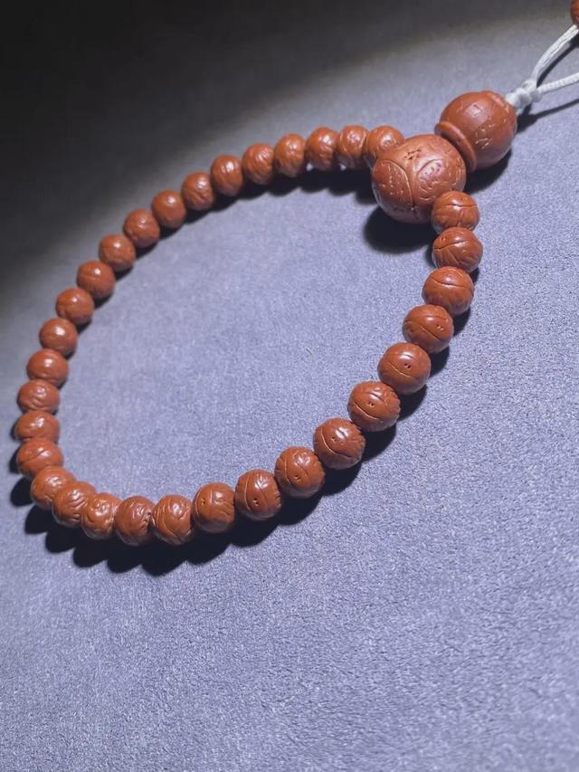 因为小凤眼变红非常容易,有的朋友买来小凤眼直接往脖子上一挂汗一沁,用不了多长时间颜色就变了,发红了颜色深了,但是那样时间长一点你的小凤眼会玩花,再就是你的小凤眼慢慢的就会变黑变酱色不好看,我们玩文玩看包浆不能只看眼前,不能只看一两年的时间,如果你说你玩一个串只玩个一两年就不玩了。