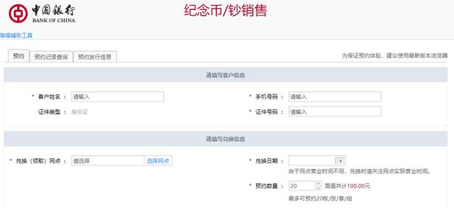 其中,中行的试约,透露了不少关键信息,百科网就在发行之前,再带大家一起看下,马上可以预约的新币,究竟是怎么样的。 面值5元,一套2枚进入中行的预约页面,可以看到新币的预约测试页面。