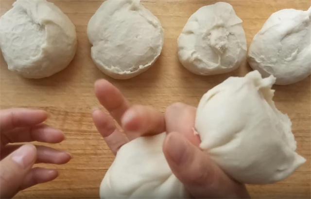 4.接下来我们把分好的面剂也揉一下,把它揉到表面光滑,我们把面剂揉成光滑的小面团,然后盖上保鲜膜醒面30分钟,醒面是为了让面有更好的延展性,然后也会更加的柔软。