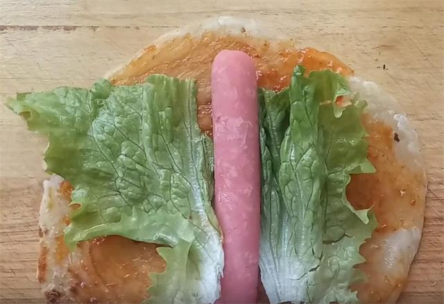 准备食材: 普通面粉、盐、白糖、植物油、开水、温水、辣椒酱、生菜、香肠 具体做法: