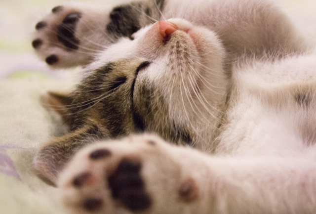2、当小猫还在哺乳期的时候,一边嘴里吸着奶,一边会用两只前爪搭在乳头旁边,并一张一收的踩奶。其作用是在刺激猫妈妈乳房分泌乳汁。此时是小猫最放松也安全的时候。长大之后,小猫也会在主人的手臂或柔软舒适的毛毯上有爪子一张一收的踩奶动作,表示当前很舒服,很放松。