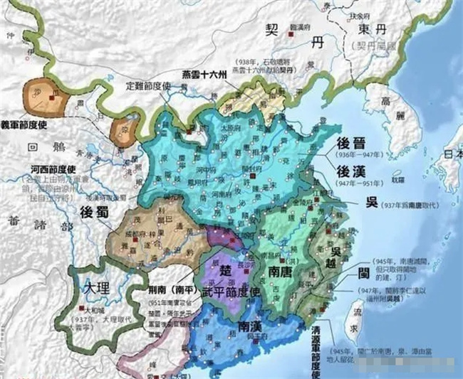 这么说吧!我读中国历史让我困惑的是南北朝时东晋十六国,最让我 CPU发热的就是唐末之后的五代十国。中国历史上的大分裂时代,一个是东晋十六国,另一个就是五代十国;五代十国是中国古代社会,自秦汉统一以来,继东晋十六国之后,第二个大分裂和大战乱的历史时期。由于其5个朝代总共只有53年的统治历程,各国又均忙于相互兼并混战,基本国内的争权夺位,故在此乱世时期,各国将无暇顾及正确建设的革新与发展,无论与北方与南方诸国,其实都是沿袭了唐朝的体制或政体而已。