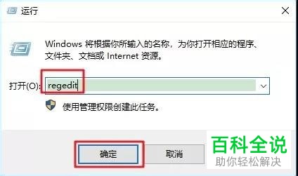2. 在打开的运行窗口中,输入regedit 命令,【确定】或回车。